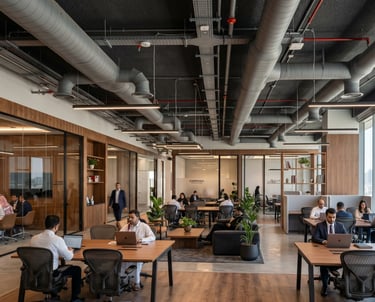 "تنفيذ حلول شاملة (تسليم المفتاح) لمساحات مكتبية متطورة في قلب قطاع الأعمال. شمل نطاق العمل دمج التصاميم المعمارية الحديثة والتشطيبات الفاخرة مع شبكات التكييف والأنظمة الكهروميكانيكية (MEP) المعقدة، باستخدام أحدث تقنيات القياس لضمان دقة تنفيذ متناهية وبيئة عمل استثنائية."