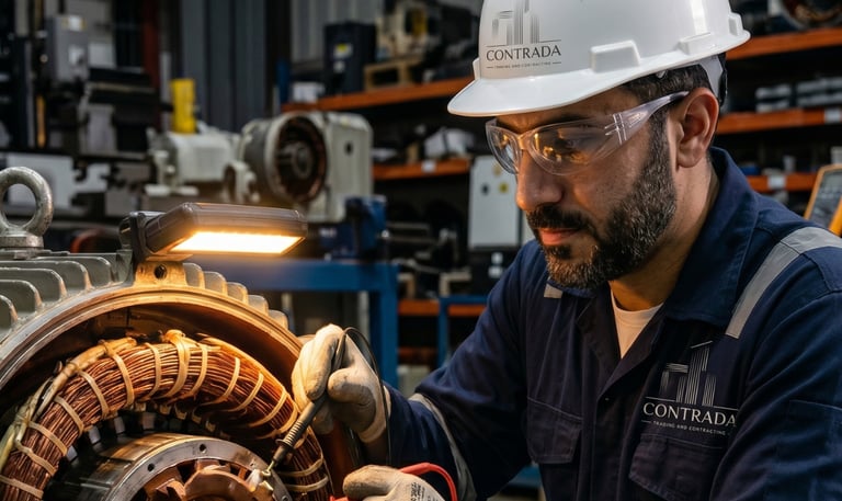 "تقديم دعم فني وهندسي مستدام لمنشأة صناعية، شمل إجراء صيانة دقيقة لشبكات الكهروميكانيك، وإعادة لف المحركات الكهربائية باحترافية، وتجميع المضخات المخصصة. ضمنت منهجيتنا في الصيانة الوقائية استمرارية العمليات التشغيلية بكفاءة تامة وتجنب أي توقف مفاجئ للأعمال."